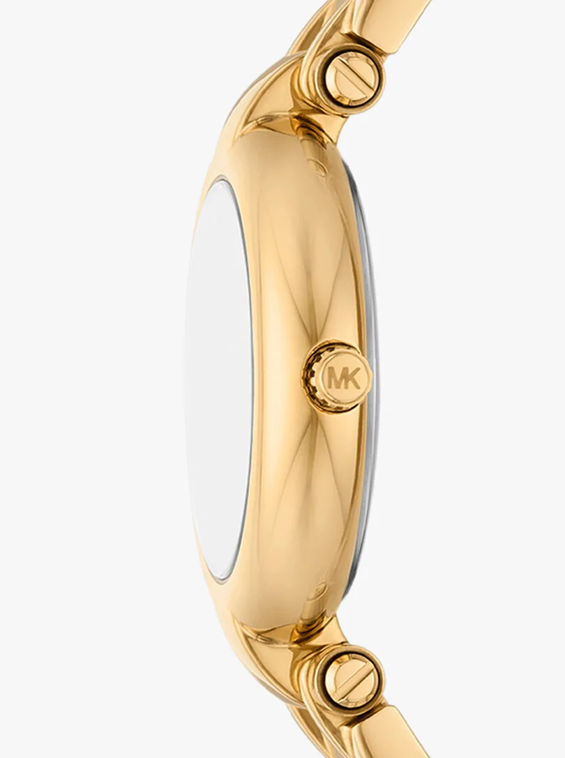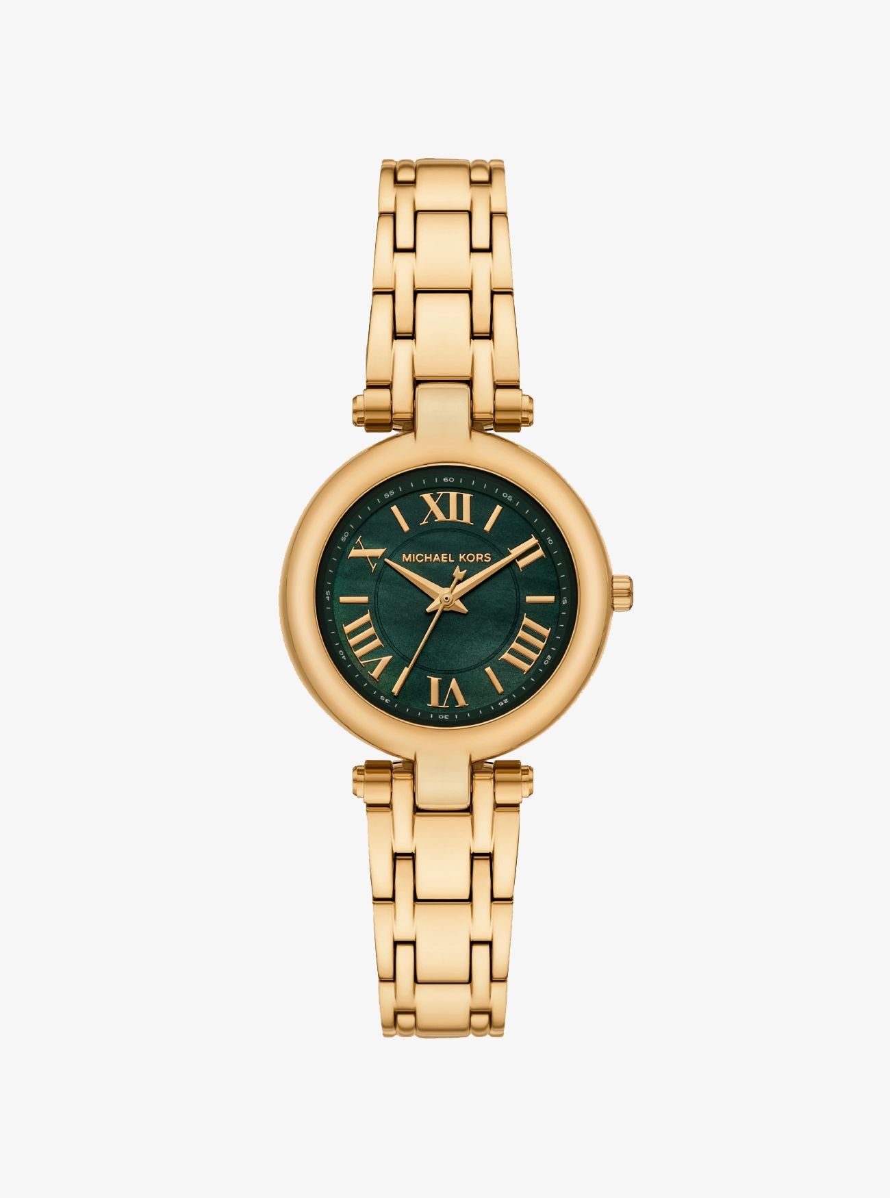 La montre miniature Laney est un chef-d’œuvre d’élégance discrète. Une lunette circulaire ancre le bracelet, tandis que le cadran en vert véritable, avec des repères en chiffres romains, apporte une touche unique au style classique. Fabriquée en acier inoxydable de ton or, elle est conçue pour être porté pendant des années.