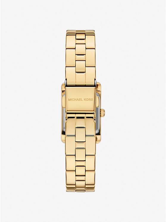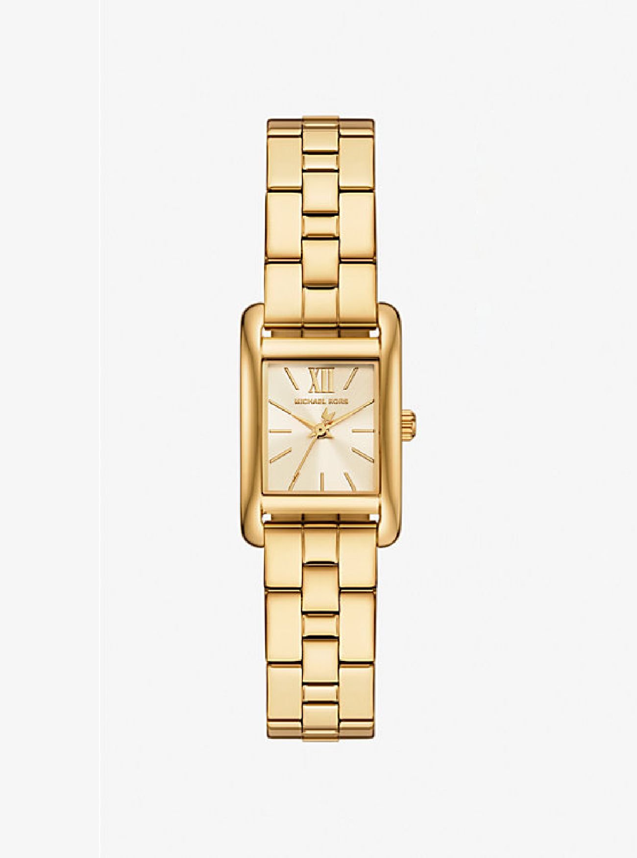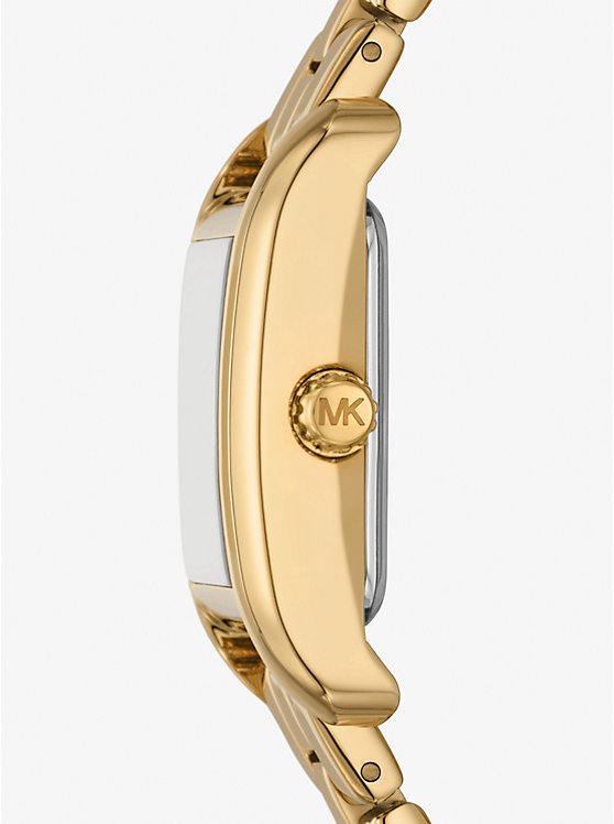 Notre montre Monroe fera une élégante impression jour après jour. Confectionnée en acier inoxydable de ton or, cette petite montre à maillons gourmette présente un élégant affichage à trois aiguilles et des chiffres romains classiques